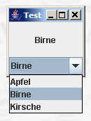 Often, you want to let the user choose from several options. This is where drop-down menus come in JComboBox. When a user clicks a drop-down menu, a list of options opens. If the user selects one, an event is ActionEventtriggered. In the following program, we capture this event and display the result in a label.