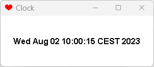 import java.awt.Dimension; import java.awt.Font; import java.awt.FontMetrics; import java.awt.Graphics; import java.awt.event.WindowAdapter; import java.awt.event.WindowEvent; import java.util.Date; import javax.swing.JFrame; import javax.swing.JPanel; /** * A thread that becomes active every 1000 ms. */ class RedrawThread extends Thread { JPanel canvas; boolean stop = false; public RedrawThread (JPanel canvas) { this.canvas = canvas; start(); } @Override public void run() { while (!stop) { Try // Necessary! { sleep(1000); // Wait 1 second } catch (Exception ex) { } canvas.repaint(); } } } class Display extends JPanel { public Display () { setPreferredSize(new Dimension(300, 100)); // Set panel to Double Buffered setDoubleBuffered(true); } @Override public void paint (Graphics g) { g.setFont(new Font("Dialog", Font.BOLD, 16)); FontMetrics metrics = g.getFontMetrics(); String s = new Date().toString(); // Due to double buffering, we have to delete manually. int w = getWidth(); int h = getHeight(); g.clearRect(0, 0, w, h); // Calculate string width and height int ws = metrics.stringWidth(s); int hs = metrics.getHeight(); // Calculate starting point for string int x = (w - ws) / 2; int y = (h - hs) / 2 + metrics.getAscent(); g.drawString(s, x, y); } } public class Test extends JFrame { RedrawThread redraw; public Test() { super("Clock"); setDefaultCloseOperation(JFrame.EXIT_ON_CLOSE); setIconImage(new javax.swing.ImageIcon( getClass().getResource("hearts32.png")).getImage()); Display display = new Display(); add("Center", display); redraw = new RedrawThread(display); addWindowListener(new WindowAdapter() { @Override public void windowClosing(WindowEvent e) { redraw.stop = true; } }); pack(); setLocationRelativeTo(null); setVisible(true); } public static void main (String args[]) { new Test(); } }
